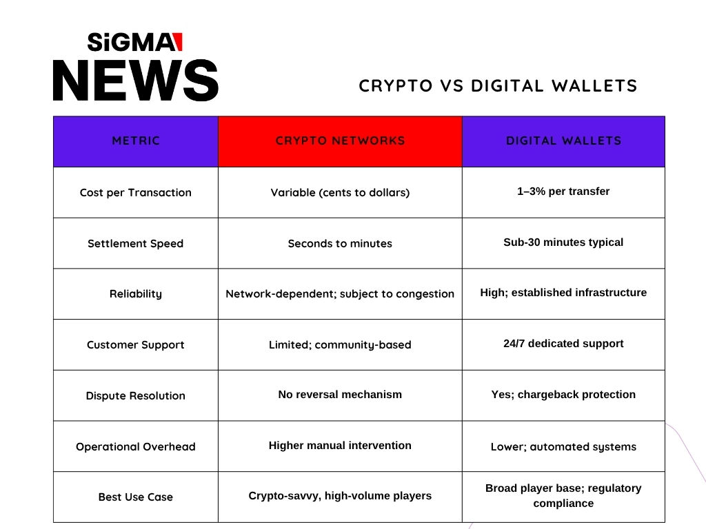 As one UK-based chief technology officer (CTO) told SiGMA News, “We benchmark crypto every quarter. It’s often not cheaper once you factor in all the operational risk and manual support overhead.”